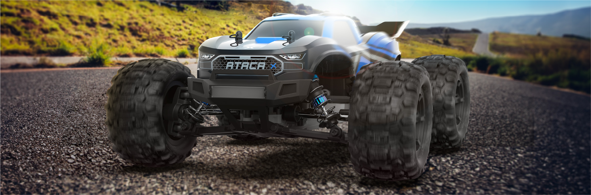 Take full control of your Ataca with a 45m remote control range. The steering wheel and throttle design provide intuitive control, while using two hands ensure better control and stability. Conquer any terrain with ease.