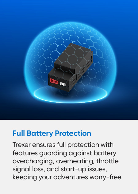 Fully protected against battery overcharging, overheating, throttle signal loss and start-up issues.