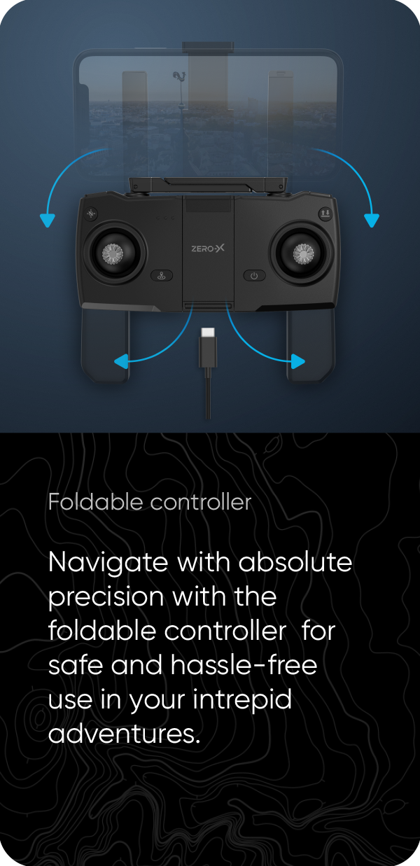 Sporting a compact folding design and built-in Li-Po battery, the rechargeable remote control features 4 flight status lights and a battery charge indicator.