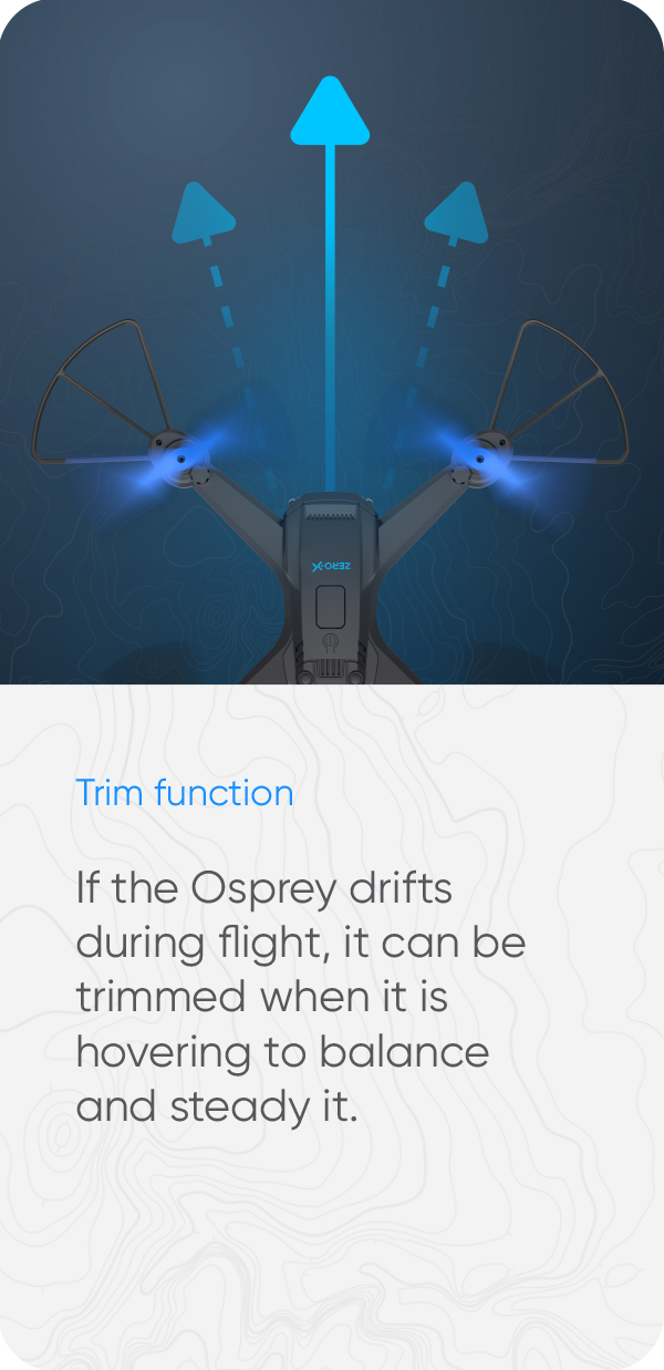 If the Osprey drifts during flight, it can be trimmed when it is hovering to balance and steady it.
