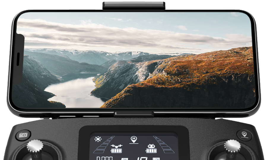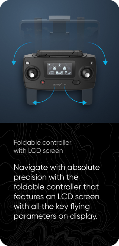 Navigate with absolute precision with the foldable remote control that features an LCD screen with all the key flying parameters on display.