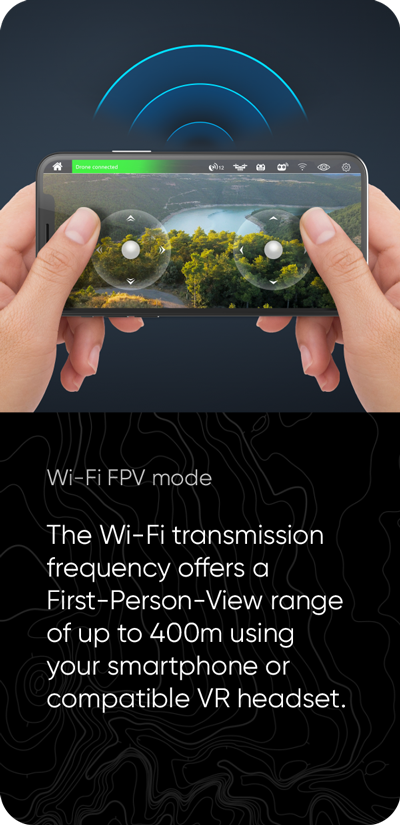 Wi-Fi connection provides a First-Person-View range of up to 400m using your smartphone or compatible VR headset.